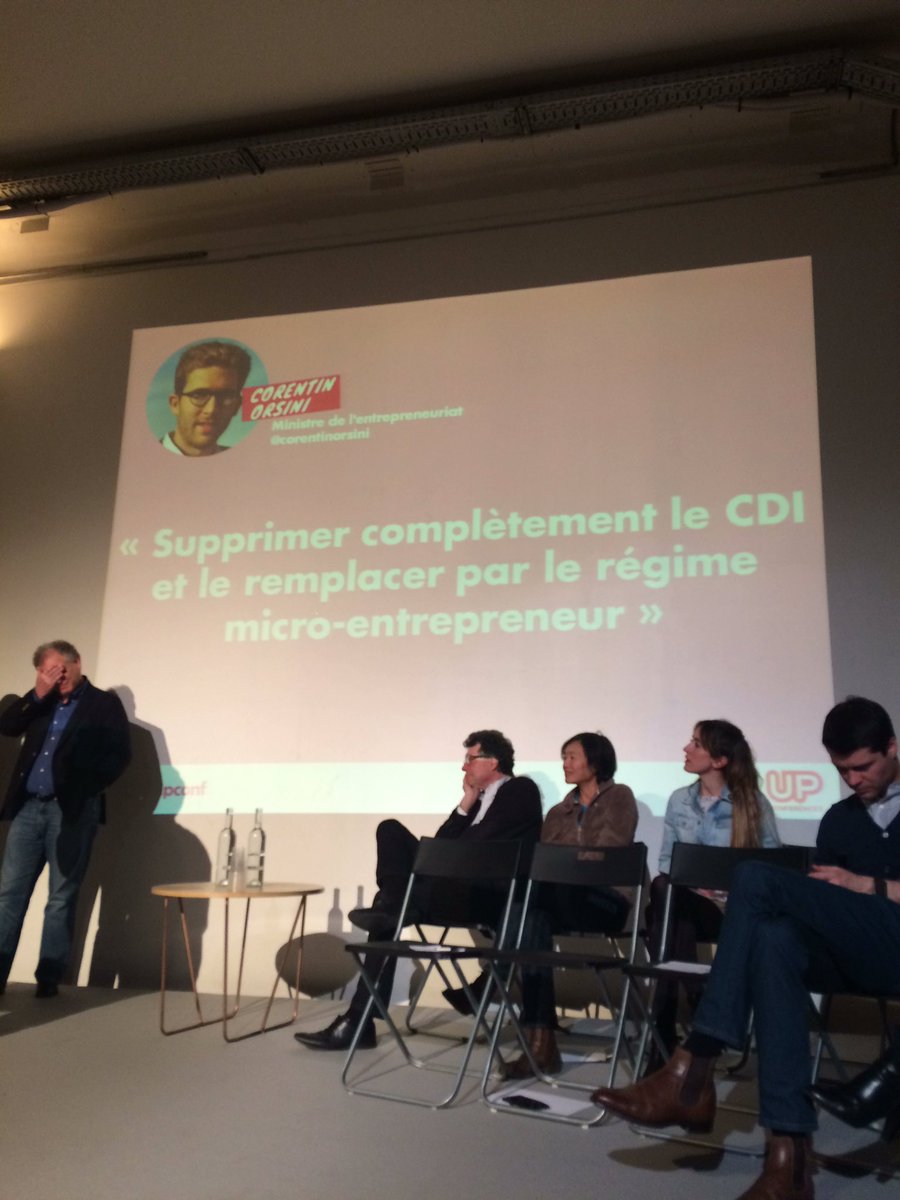 #upconf proposition osée qui à le mérité de provoquer le débat sur l'avenir du CDI et CDD. Mais micro- entrepreneur.. non
