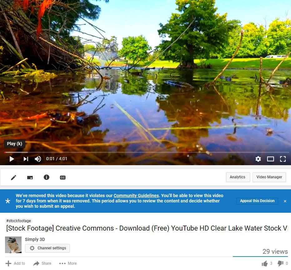 How is serene footage of a pond harmful or violent in any way? All of these reports on the channel were done in bad faith, with the intent of hurting or shutting down our channel.pic.twitter.com/YxtBr1WiyO