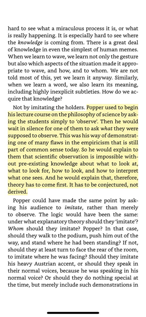 PS: The way this is sometimes put is “observations are theory laden” which means: you need a theory that explains what to observe and how. That can be a problem. The central point here is: beginning with “observe” isn’t possible. From BoI:pic.twitter.com/SuEV3xs7PJ