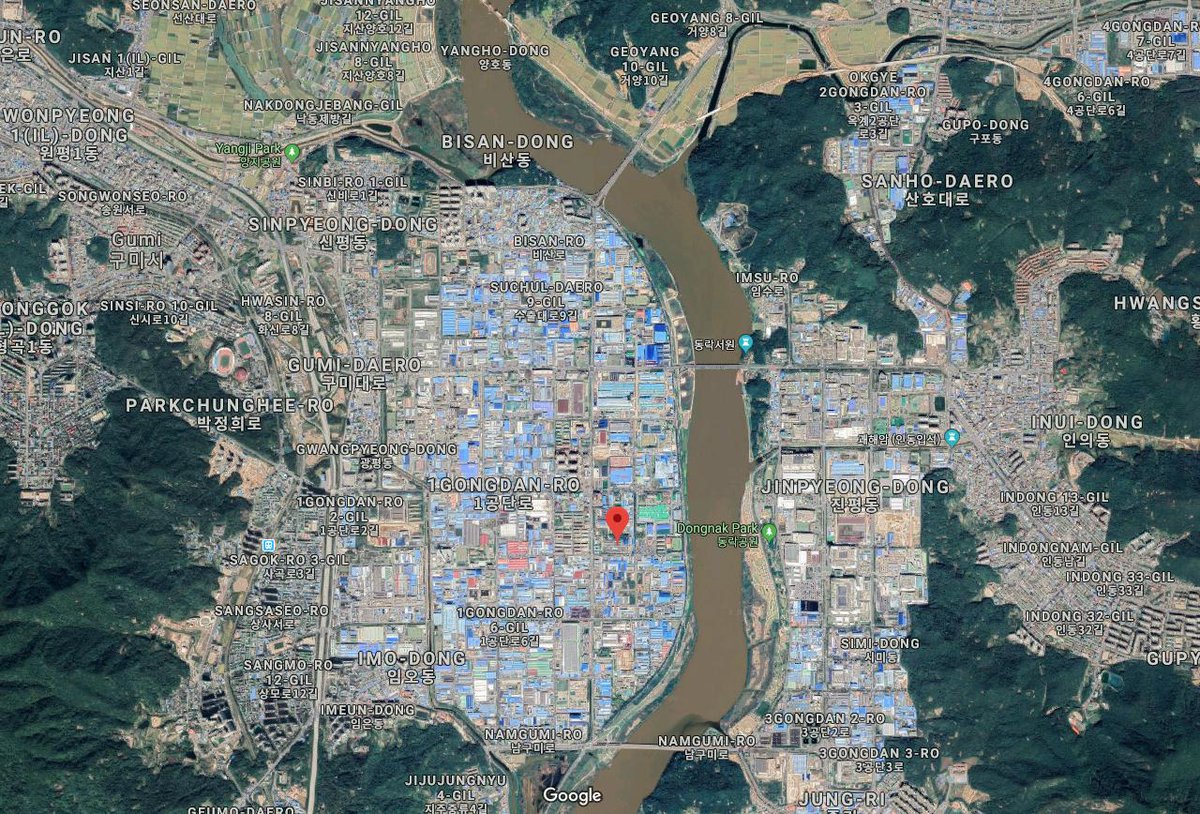 They have a plant in Gumi – the top-down view of this part of South Korea really looks like it's from SimCity. Also, interestingly, the surrounding area seems relatively undeveloped – I wonder why...?pic.twitter.com/aDhQlrR3t4