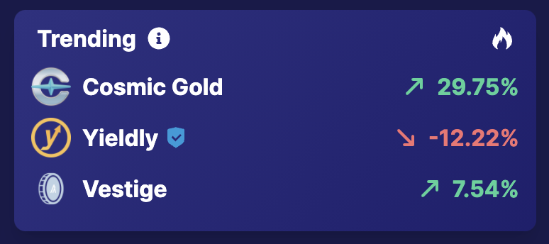 We're here to take #p2e on Algo to the world, and excited to see$COSG trending as top of the pops on @tinychartorg