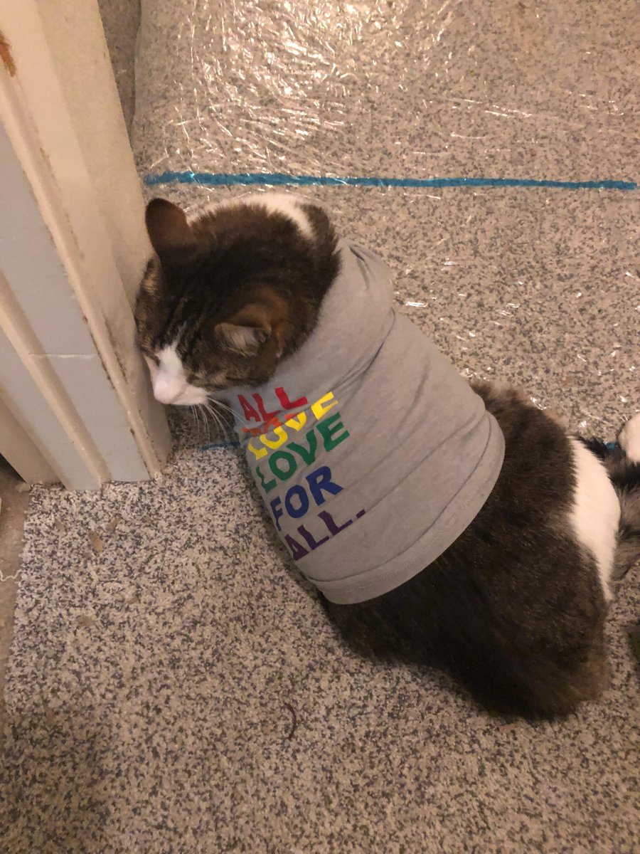 #astrophotography lately? Are your pets still adorable? We want to know! Reminder: There will be a new@AstronomyCast episode tomorrow. Here is@planetarypan's cat Ash in his post-surgery#Pride shirt.pic.twitter.com/nIEpSllXAE
