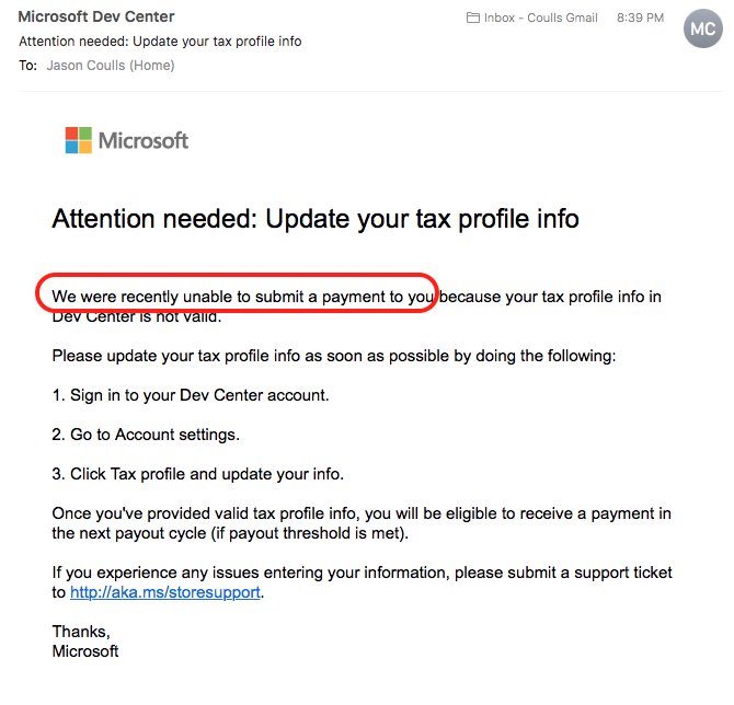 Today in "things that Microsoft do, which make me shake my head": Telling me they were recently unable to give me money, when I don't sell anything through them that could possibly generate money.pic.twitter.com/hV8cpwULKP