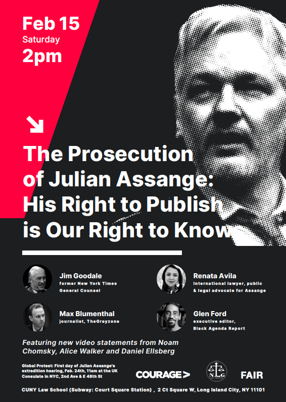 New York City: Feb 15th The Prosecution of Julian Assange: His Right to Publish is Our Right to Know A panel event w/