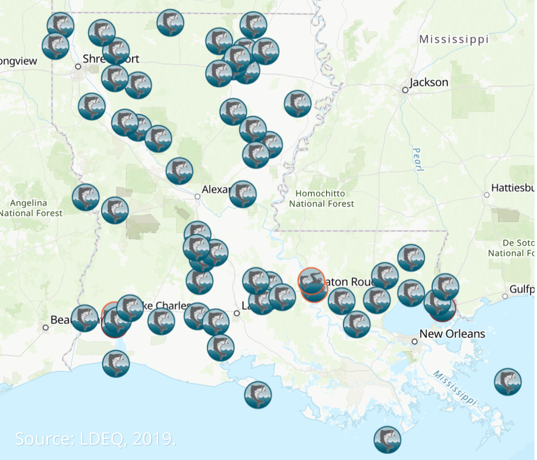 Each icon represents a body of water where it may be unsafe to consume seafood caught there and/or swim due to pollution. Water is one of our most valuable resources, so we cannot allow outside corporations to continue polluting it.