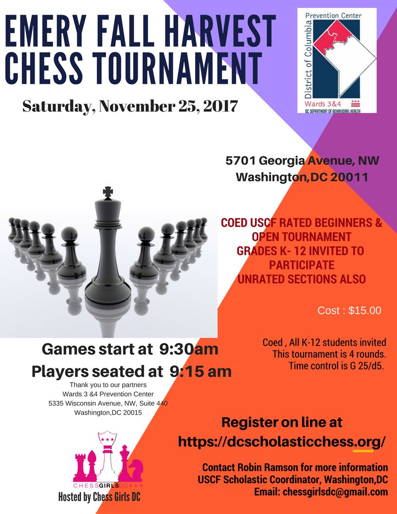 Please use your networks to spread the word about our event. Thank you for your support. Our success depends on our parents and friends of Chess Girls DCpic.twitter.com/itnQe6hgkI