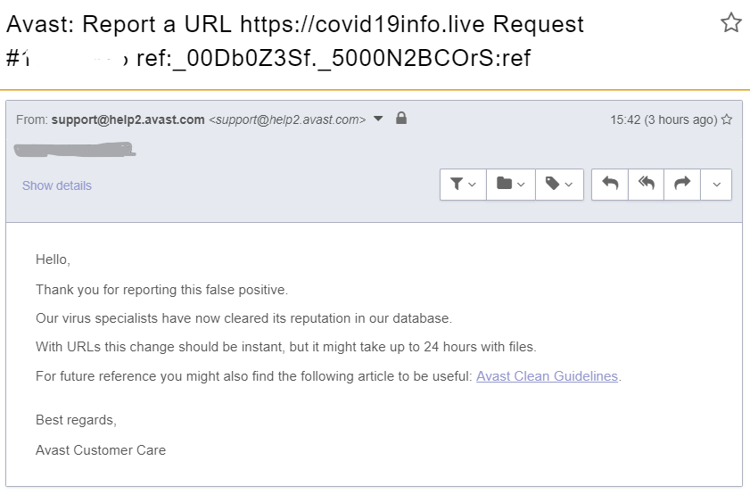 Update regarding Avast / AVG blocking: I have received emails from Avast confirming it was a false positive and its reputation has been cleared from the database. If you are still receiving warnings, please try updating your antivirus.pic.twitter.com/GedpTRgbF2
