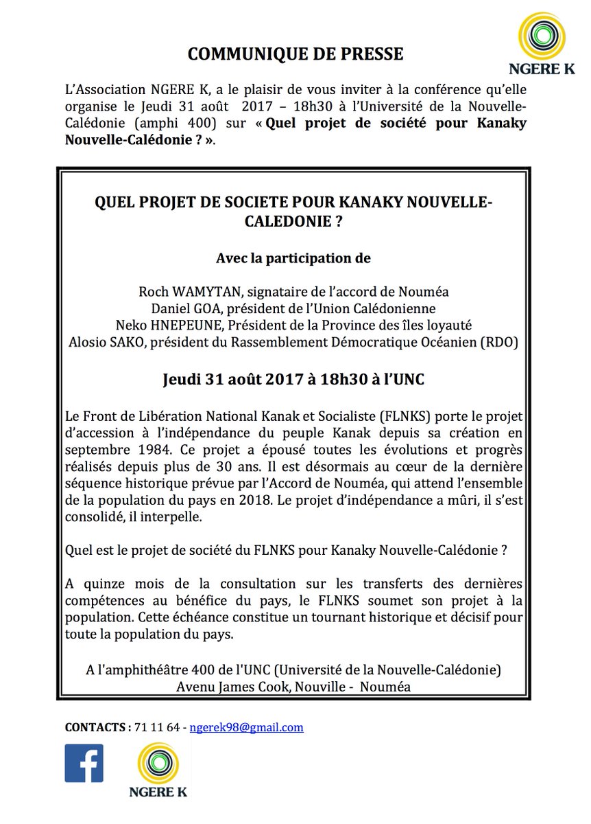 Quel projet de société pour Kanaky Nouvelle-Calédonie ? Ce sera à l'université jeudi 31 août à 18h30 #FLNKS #NgereKpic.twitter.com/nfRrvv4Mxn
