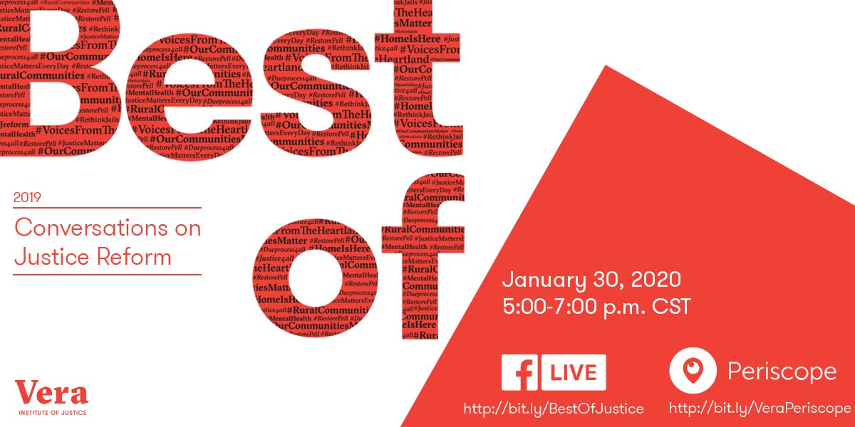 @verainstitute for#BestOfJusticeReform. Hosted by@jduffyrice and featuring@kendrick38,@samswey, Kimberly Drew & MORE, this event will highlight key moments in justice reform in 2019 & our top media recommendations for the year. http://bit.ly/veraperiscope pic.twitter.com/OUMYpLqxMy