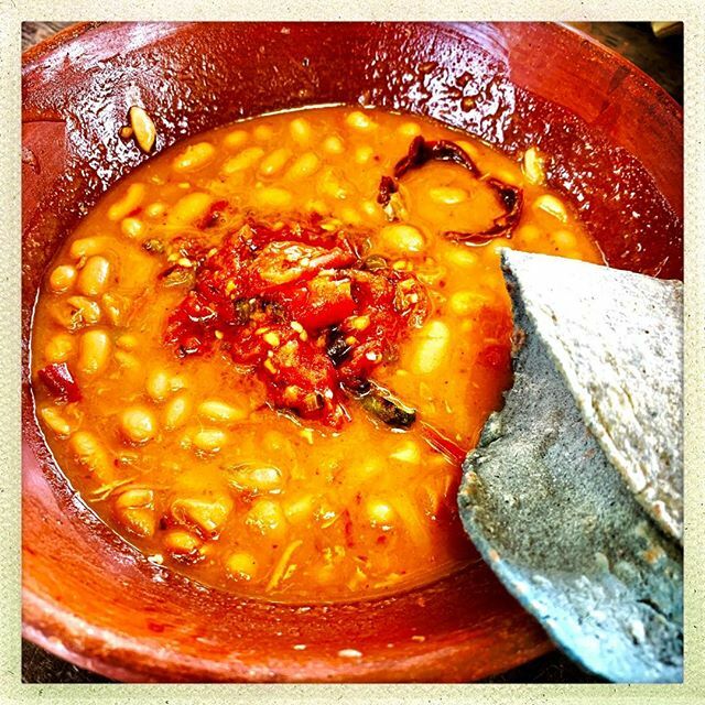 The world best bean stew with sofrito added at the end plus a salsa of charred tomato and serranos. Blue tortillas handmade of course.pic.twitter.com/3HzmaX3q9d
