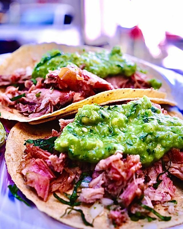 Pork tacos with onion, cilantro, guacamole and a splash of lime. Choose any cut you want from tongue to snout to stomach to leg.pic.twitter.com/kIfloZRXXv