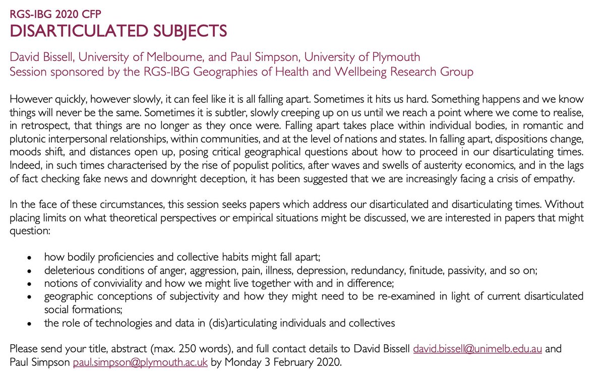 @RGS_IBG 2020 session on *Disarticulated subjects* that@psimpy and I are organising. We look forward to hearing from you!pic.twitter.com/cLr374Xb70