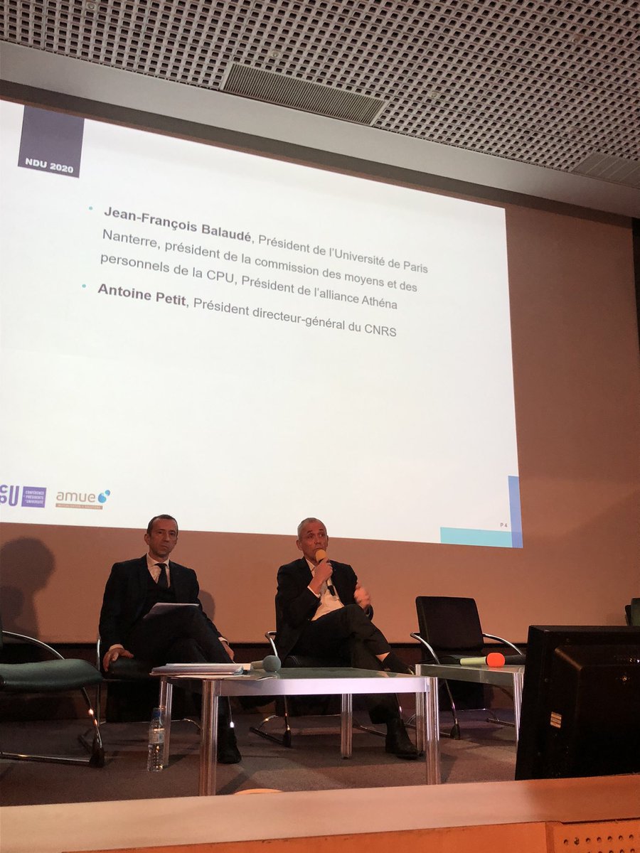 @antoine_petit_ et@JFBalaude à l’ouverture du séminaire@CNRS@CPUniversite d’accompagnement des nouvelles directrices et des nouveaux directeurs d’unité 2020pic.twitter.com/9h4z365d1w