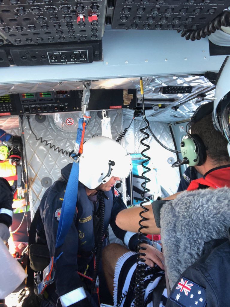 #RACQ #CQRescue has now winched a man in his 20s into the helicopter with a shark bite wound to his leg and will transfer him to Mackay Base Hodpital in a stable condition.pic.twitter.com/qWiGoyRqD5