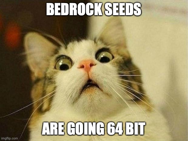 Bedrock seed finding: 2^32, pffft just brute force it. Old Java seed finding: 2^48, let’s fast forward and brute force the rest. Java 1.18 seed finding: 2^128 and only 1 in 2^64 are actually usablepic.twitter.com/0225PM1eA1