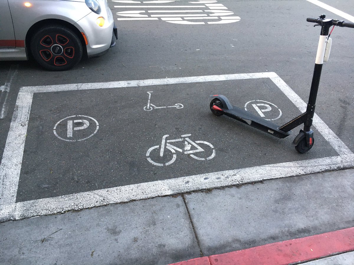[gasp!] Car parking replaced with (primarily) scooter parking in San Diego! The chaos! Dogs and cats living together...mass hysteria!!! Or they are prioritizing vibrancy, placemaking, safety, and access for pedestrians over cars. Either way. Same same.pic.twitter.com/BsQoB7RBgd