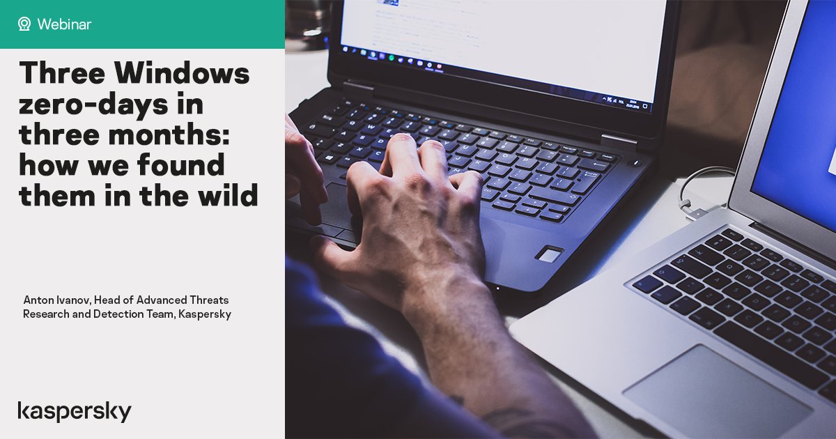 #Windows zero-days in the wild. Our security researcher@antonivanovm shares the details of how vulnerabilities CVE-2018-8453, CVE-2018-8589 and CVE-2018-8611 were detected: https://kas.pr/3h6c#webinar#infosecpic.twitter.com/oPBgOQ7JmO