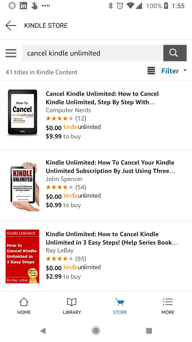 @AmazonKindle store preying on people punching in a request to cancel Kindle unlimited and not knowing better. They should make this part be a little more Alexa-ey on Kindles like how searching for common Windows issues in Bing gives answers.pic.twitter.com/aFb61qdIvD