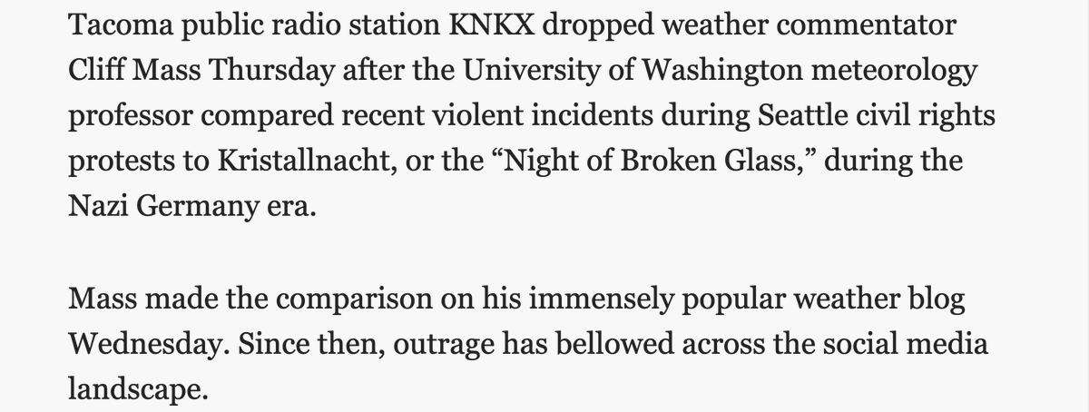 Jewish weatherman fired for comparing riots to Kristallnacht on his blog But he missed the crucial moral point: the glass-smashers in Germany in 1938 were the Bad Guys while the glass-smashers in USA in 2020 are the Good Guys. So, Mass must be canceled. https://www.unz.com/isteve/jewish-weatherman-fired-for-comparing-chaz-to-kristallnacht-on-his-blog/ …pic.twitter.com/4i2RjJeZKg