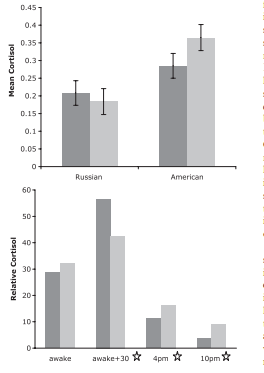There are sex differences in resting cortisol everywhere, with women showing higher levels and reporting more daily stress. Sometimes though, ethnic differences matter more: Russian women have much lower cortisol throughout the day than US men. From https://www.tandfonline.com/doi/abs/10.1080/00207590903452309 …pic.twitter.com/2Do2D41eME