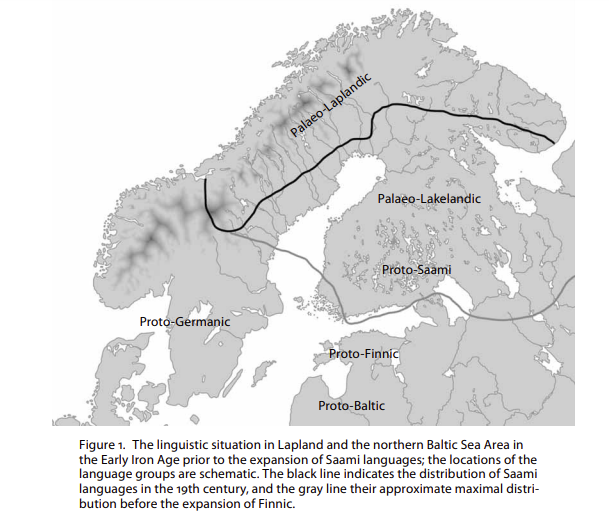 In the Saami languages there are hundreds of vocabulary items that are neither Indo-European nor Uralic and which represent the remnants of a relic population of hunters encountered by the Saami at the time of their expansion from Finland, sometime around the birth of Christ.