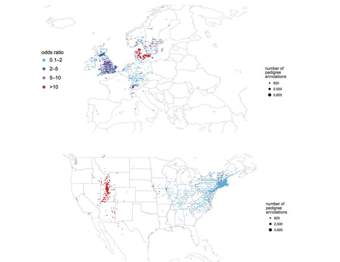 Here are some of the more interesting of America's genetic clusters. First, Mormons. Note the huge Danish overrepresentation. You also see a lot more variance in England compared to the other British derived clusters: some cities produced tons of Mormons. https://twitter.com/crimkadid/status/1339454628816166912 …pic.twitter.com/wkJtuM43tP