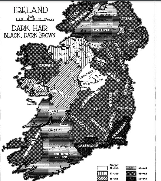 One of the last great works of ethnic physical anthropology done before the de facto WWII ban on the science was a gigantic 10,000 person survey of the people of Ireland which examined their height, coloring, and cephalic index. https://sci-hub.se/https://onlinelibrary.wiley.com/doi/abs/10.1002/ajpa.1330260131 …pic.twitter.com/7PqOVyunYB