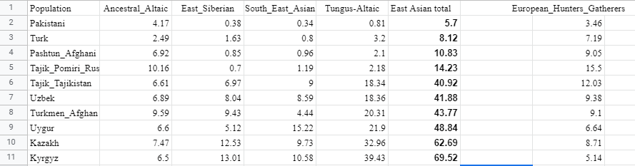 How East Asian are the _Stan countries? I kept in the European hunter gatherer values to show the vestigial pocket of Yamnaya ancestry that peaks in Tajikspic.twitter.com/EKiJQjfTiT