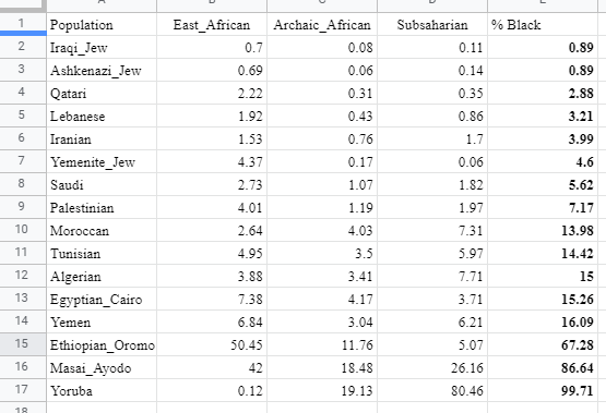 Got tired of wondering how Black or Asian ____ are so took ADMIXTURE values from the MDLP project and used to answer questions for future reference like, how black is the Middle East?pic.twitter.com/indLQwXwAZ