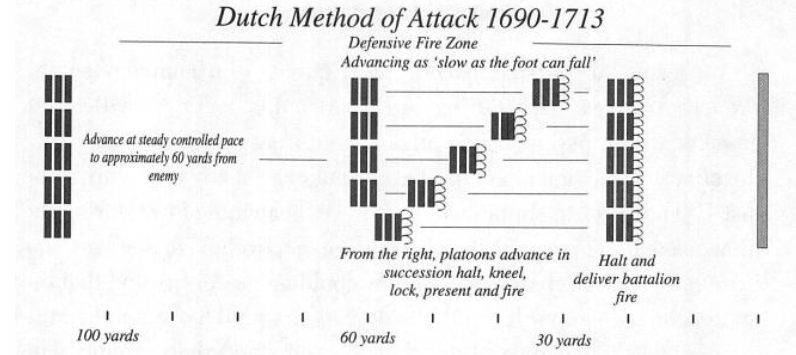 The attack that demanded the greatest discipline was that of the Dutch, appropriate for the people who invented modern military drill. Platoons fired one at a time at 60 yards, advancing at a snail's pace so platoons who had fired could move and reload at the same time.pic.twitter.com/l9YHPiMoiY