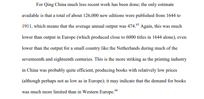 In what important ways was Europe more advanced than China before 1800? Here's one: work by Chinese historians suggests that in the period 1505-1644 about 50 new printed book editions were produced per year in the country, as against 3750 in West Europe. http://citeseerx.ist.psu.edu/viewdoc/download?doi=10.1.1.553.9220&rep=rep1&type=pdf …pic.twitter.com/rHJMl6sKzc
