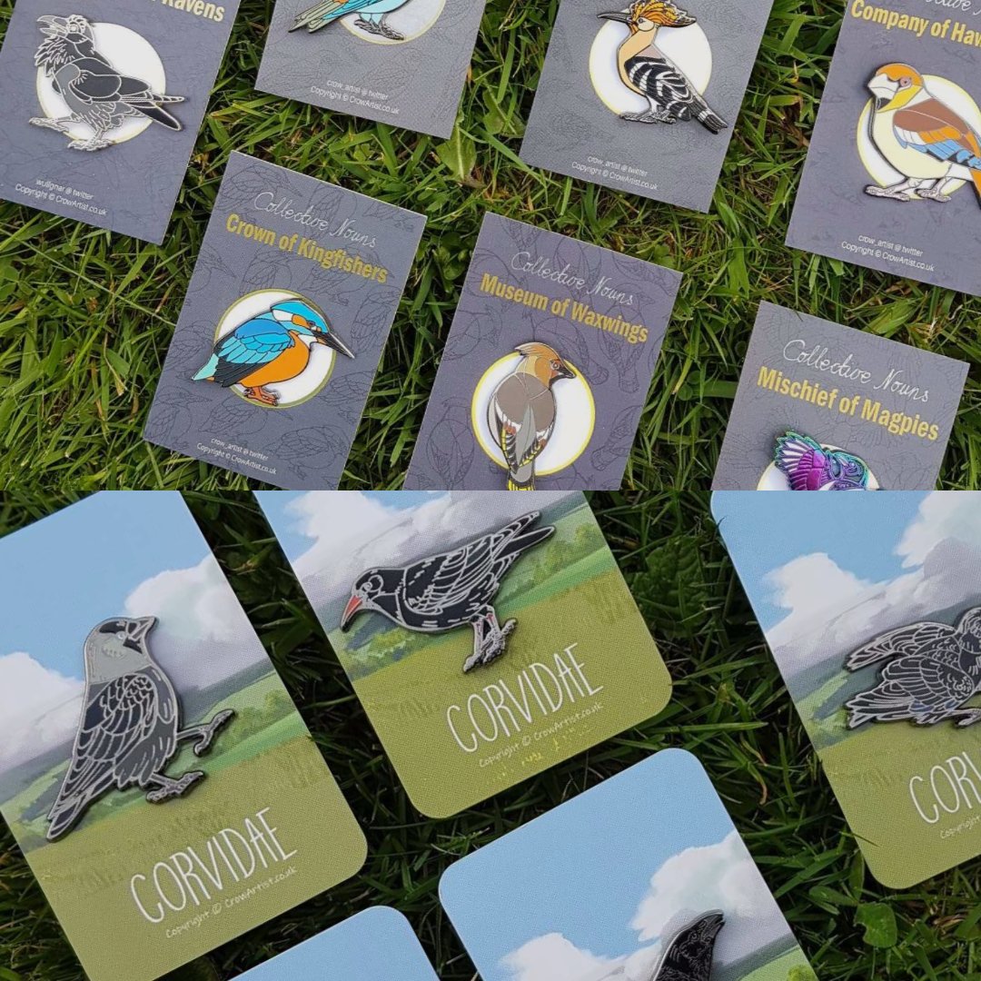 I'm an artist based in England, where I specialise in designing enamel pin badges of birds and other Crow and bird merch! Visit my stores below for some bird merch!