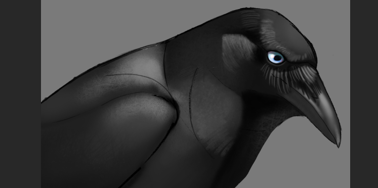 The Corvus mellori, the "Little Raven" from Austrailia. Just adding the flats and lighting ready for colour! Another teaser from my "World of Ravens" book!pic.twitter.com/cz4kKdStcw