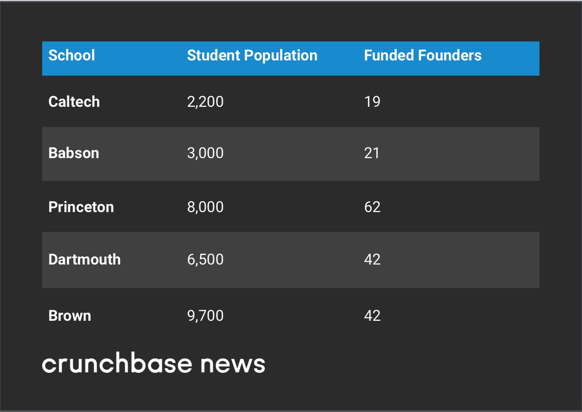 #entrepreneurship. They include: 1.@Caltech 2.@babson 3.@Princeton 4.@dartmouth 5.@BrownUniversity Top Universities For Funded Founders: https://buff.ly/2NZTomq pic.twitter.com/NIu8jAz6Gr