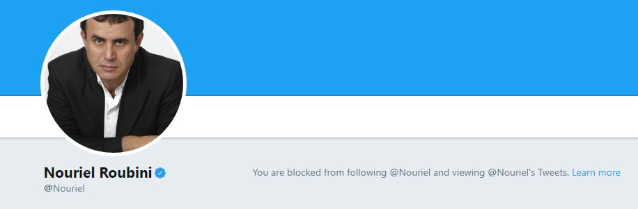 Seems like I've been Blocked by@Nouriel too. Dude is trigger happy with block button so double a debate will happen soon between