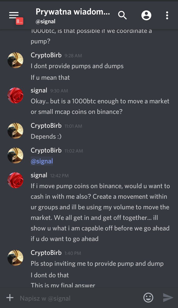 Idk if it is kind of psychology test but I DONT PROVIDE PUMP&DUMP service My discord is legit and fair with strong, caring and supportive community inside Why some people cant really understand it? *Banned