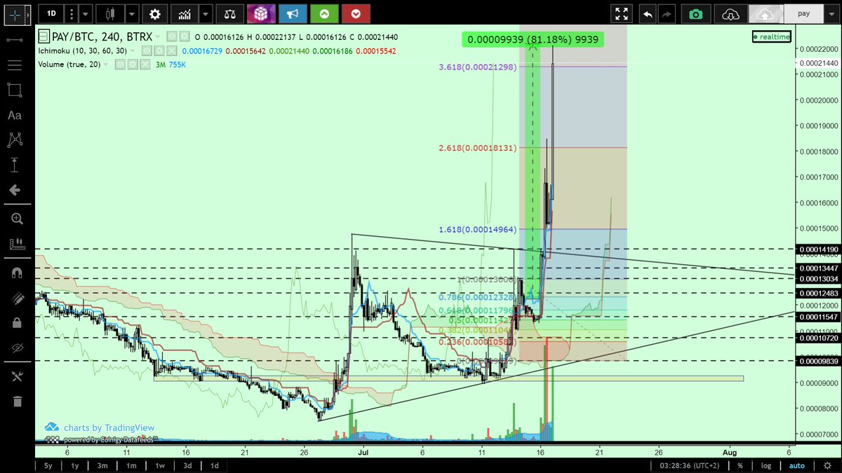 $btc update >pure inversed HS plays out, range->7,8k >6,8k resistance turns into strong support >2.618 fibo level combined with Senkou Span B, downtrend-strong resistance >7,5k rejection due to previous uptrend touchpoint of symmetrical triangle >retracement (6,8-)7,15k expectedpic.twitter.com/0hTI1jViba