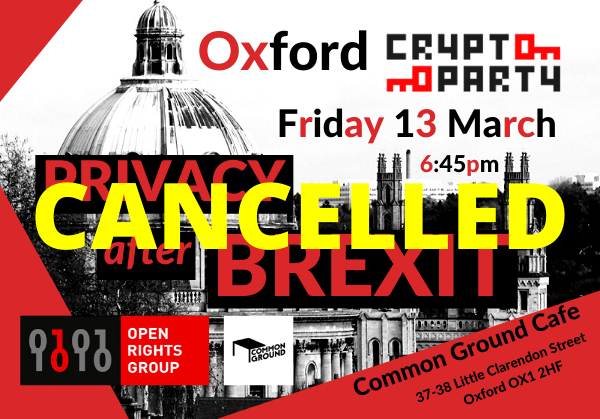 @CryptoPartyOX in Oxford and the@ORGLondon event 18 March due to public health concerns. We intend to reschedule both events as soon as possible. Many thanks to all our amazing speakers for their understanding.pic.twitter.com/m55JoLUETD