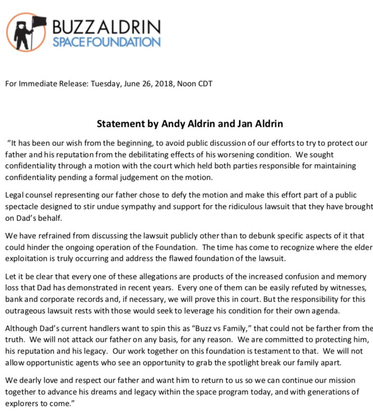 This had to be a painful statement for Buzz Aldrin’s family to make. But it’s essential for understanding what is likely going on here. pic.twitter.com/Z5t9a8SnvU