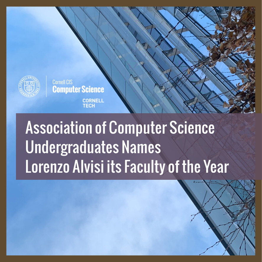 Association of Computer Science Undergraduates (ACSU) names Tisch University Professor Lorenzo Alvisi its Faculty of the Year. https://www.cs.cornell.edu/information/news/newsitem10962/association-computer-science-undergraduates-names-lorenzo-alvisi-its …pic.twitter.com/7XqpaIAXZw