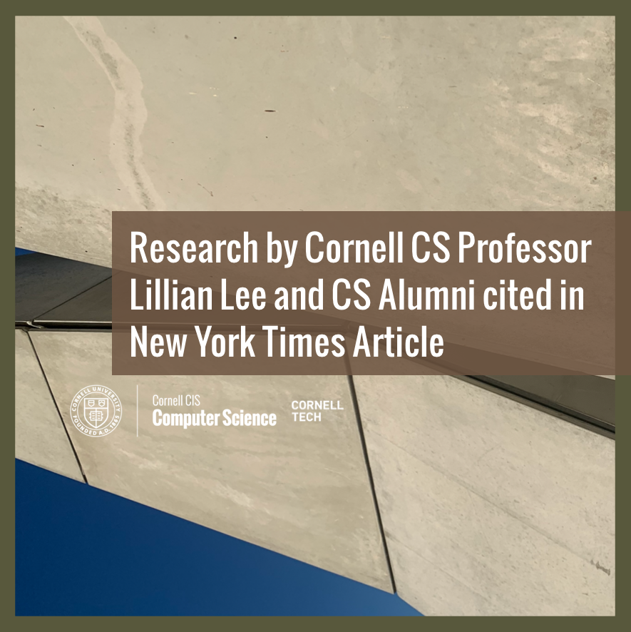 Research by Cornell CS professor Lillian Lee, CS alumni (including Justin Cheng, Jure Leskovec, Vlad Niculae, Chenhao Tan), and Cornell IS associate professor Cristian Danescu-Niculescu-Mizil, cited in New York Times article. https://www.cs.cornell.edu/information/news/newsitem10978/research-cornell-cs-professor-lillian-lee-and-cs-alumni-cited-new …pic.twitter.com/w2XsNFTh3w