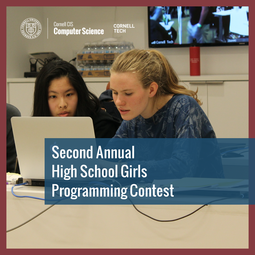 Cornell will hold its Second Annual High School Girls Programming Contest on Saturday, February 8th from noon to 4:30 pm in Ithaca and NYC. The contest is an educational event open to all high school girls interested in programming. https://www.cs.cornell.edu/information/news/newsitem10972/second-annual-high-school-girls-programming-contest …pic.twitter.com/DXdM5c5toq