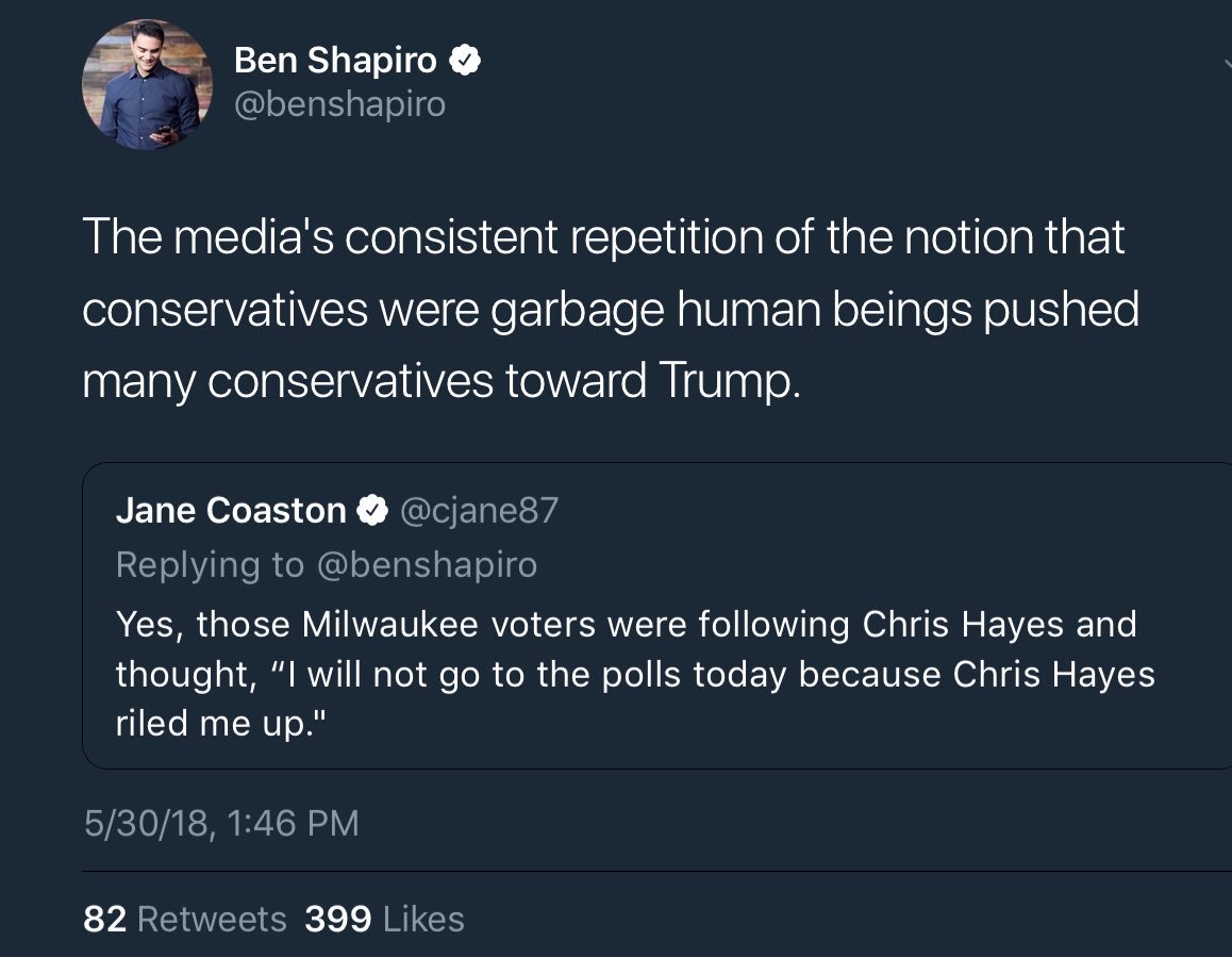 Some nice abuser logic from Shapiro here. “Look what you made us do,” where the offense in question is telling conservatives that they have a problem with racism and conspiracy thinking in their ranks.pic.twitter.com/69SuYcu7yy