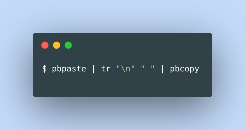 Convert newlines in copied clipboard text to spaces on macOS command line ``` this before that ``` to ``` this before that ``` and paste from the clipboard...