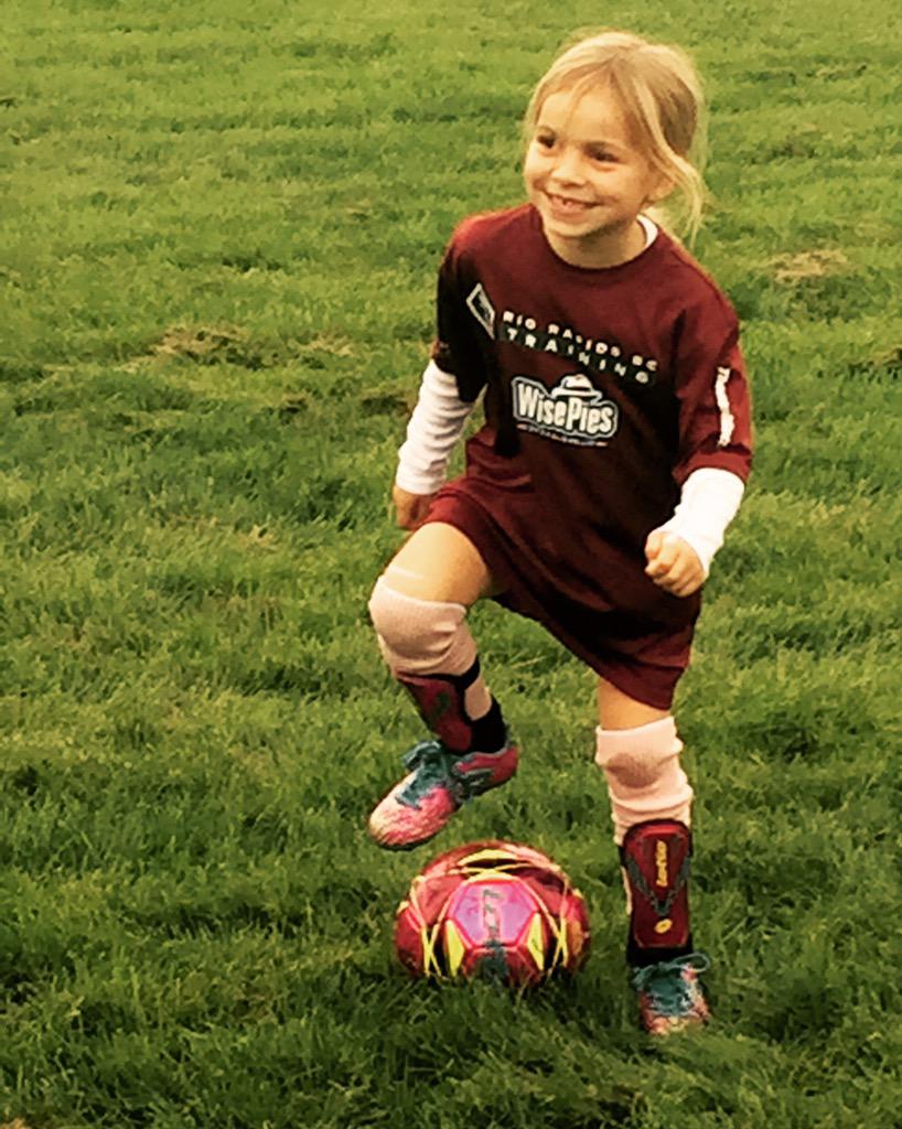 She gets her soccer fashion sense from her dad @KRQEMark loving the shinguards.pic.twitter.com/PFKgpLYque