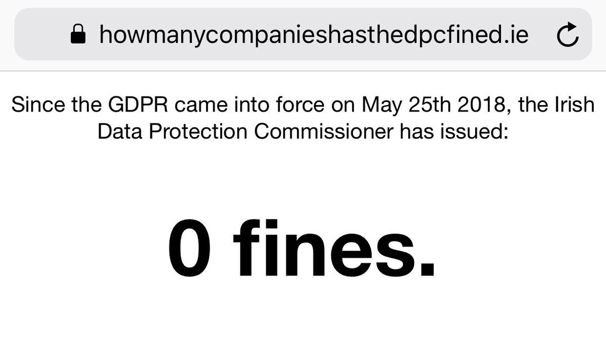 @DPCIreland (home of every major tech company) has fined since#GDPR has been applicable http://howmanycompanieshasthedpcfined.ie (found via@DrThomasHelbing)pic.twitter.com/yRZvJc0jUz