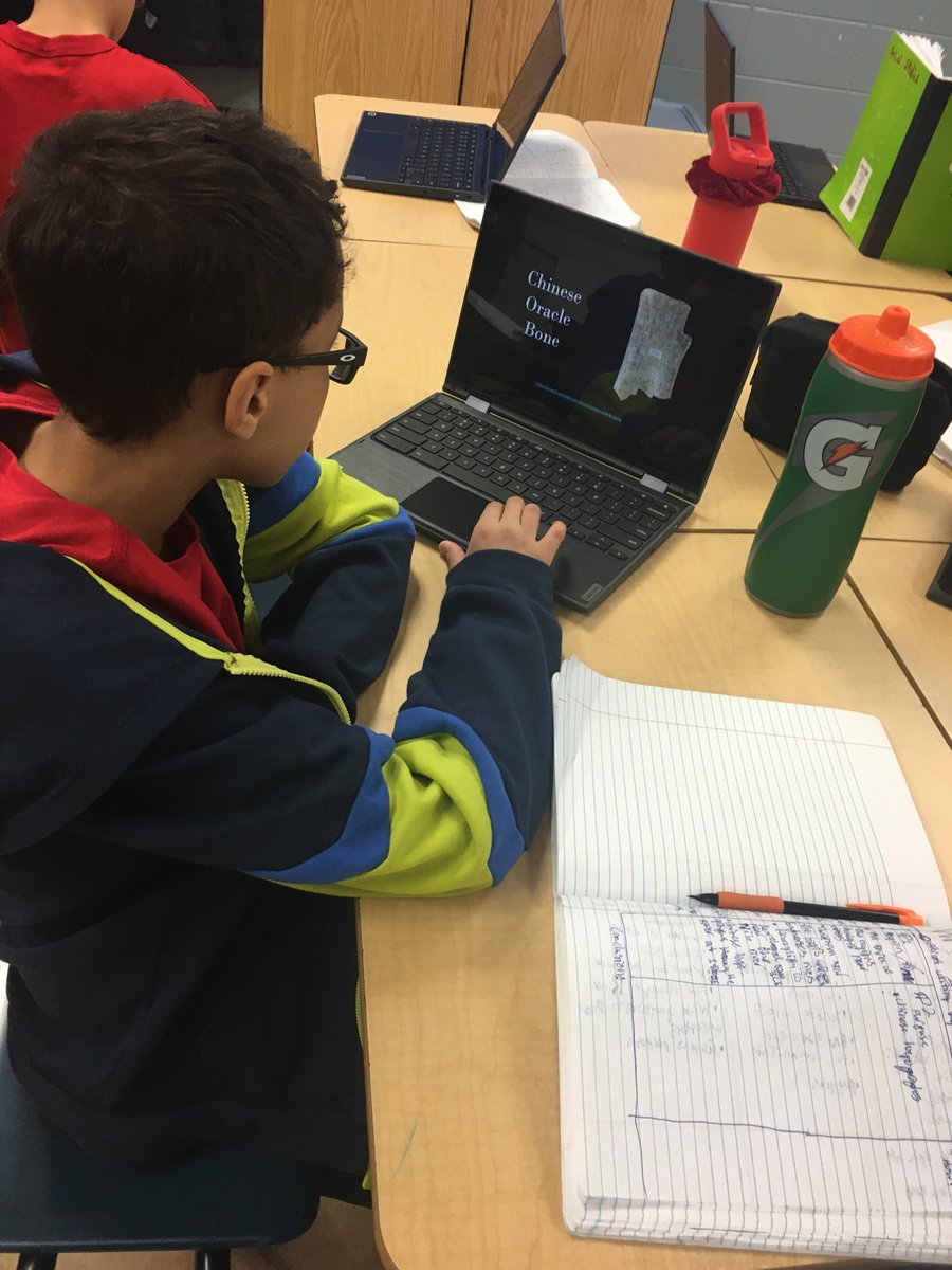 Our sixth graders are piloting a 1:1 student/technology initiative for our school. Each sixth grader has his/her own chrome book that is their’s while at school. They are currently utilizing these devices in each subject area, each day. Exciting times at