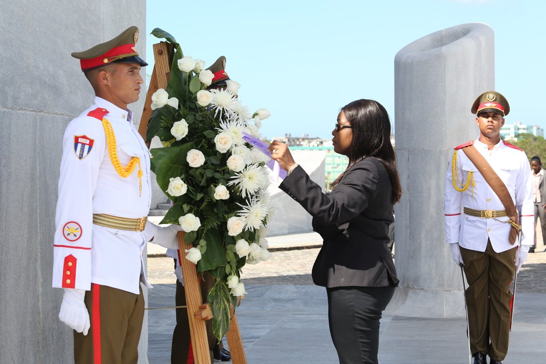 , Saara Kuugongelwa-Amadhila, rindió homenaje a #JoséMartí con la colocación de una ofrenda floral ante el Monumento al Apóstol en la Plaza de la Revoluciónpic.twitter.com/nTPTogLbbB