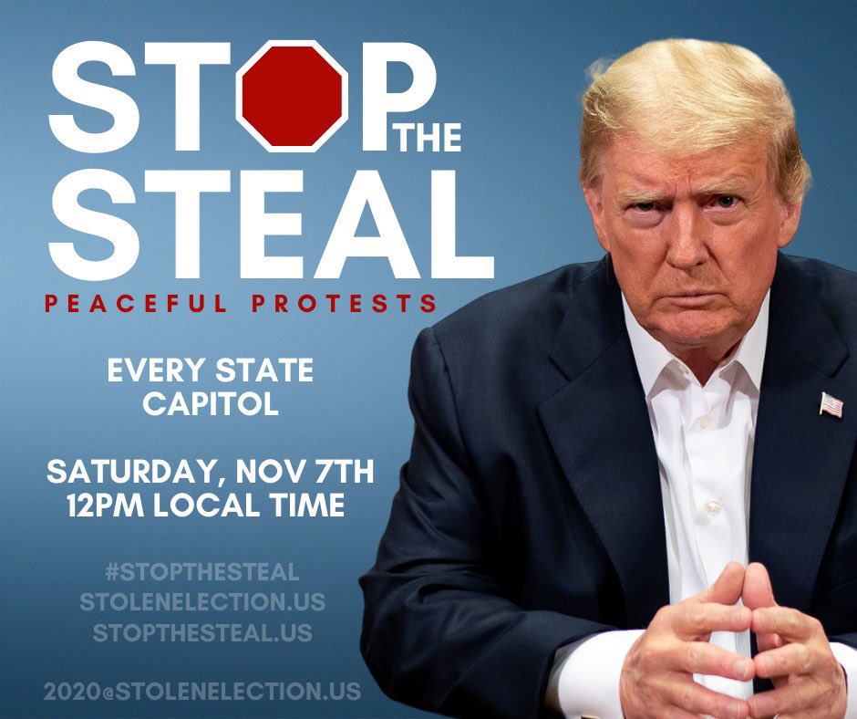#StopTheSteal ANNOUNCES DAY OF NATIONAL PROTEST. EVERY STATE CAPITOL, SATURDAY, 12pm. Share this like hell. GET UP AND GET OUT THERE!pic.twitter.com/N3LQ93QSiG
