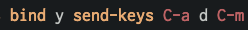 #tmux and have Ctrl-A as your bind key like I do, then this conf entry will help you detach gracefully from a screen session (normally Ctrl-A-D) while in tmux. Map bind + y to sending the correct screen detach keystrokes.pic.twitter.com/JHJ3vbmewI